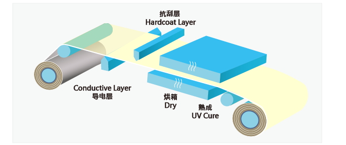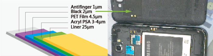 Off Coating Line I. Release and Adhesive Coating Technology Know-How for The Application of NFC, RFID wireless communication and Touch Panel, Smart Phone etc. a. Anti-fin ger Black Tape for Mobile Phone antenna/NFC